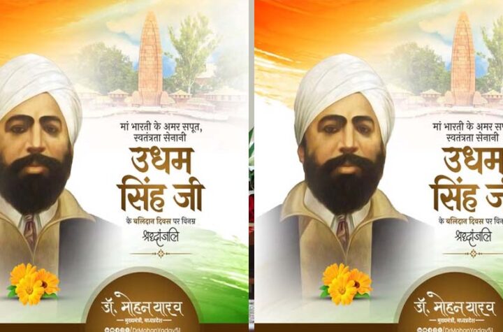 भोपाल मुख्यमंत्री डॉ. मोहन यादव ने स्वतंत्रता सेनानी उधम सिंह के बलिदान दिवस पर उन्हें विनम्र श्रद्धांजलि अर्पित की। मुख्यमंत्री...