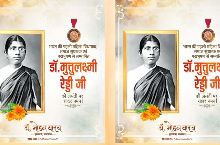 भोपाल मुख्यमंत्री डॉ. मोहन यादव ने भारत की पहली महिला विधायक, सर्जन और समाजसेविका डॉ. मुत्तुलक्ष्मी रेड्डी की जयंती पर...