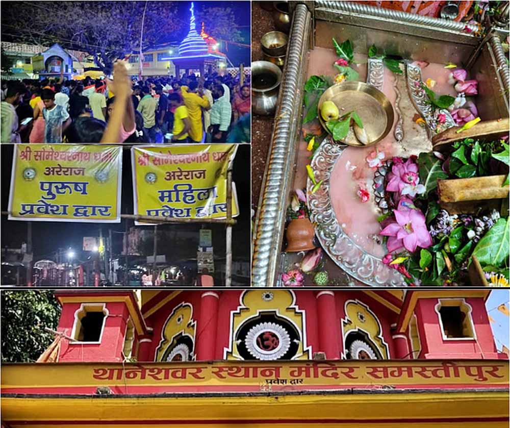 समस्तीपुर जिले का प्रसिद्ध थानेश्वर मंदिर भी सावन के पहले सोमवार पर श्रद्धालुओं की आस्था का केंद्र बना रहा। मंदिर में शिव-पार्वती एक साथ विराजमान हैं और यह मान्यता है कि यहां सच्चे मन से पूजा करने वाले भक्तों की सभी मनोकामनाएं पूरी होती हैं। यह मंदिर 1901 में स्थापित हुआ था और आज भी इसकी महिमा दूर-दूर तक फैली है। रविवार रात से ही यहां जलाभिषेक के लिए भक्तों की भीड़ जुटने लगी थी। स्टेशन और बस स्टैंड से मंदिर तक आने के लिए सुगम रास्ता होने से भक्तों को विशेष सुविधा रही। मंदिर के मुख्य पुजारी संजय झा ने बताया कि मंदिर के पास नगर थाना स्थित होने के कारण इसका नाम थानेश्वर पड़ा। सावन के दौरान यहां आसपास के जिलों से भी भारी संख्या में श्रद्धालु पूजा-अर्चना के लिए आते हैं। भीड़ को नियंत्रित करने के लिए सदर डीएसपी संजय कुमार पांडे के नेतृत्व में पुलिस बल की तैनाती की गई थी।