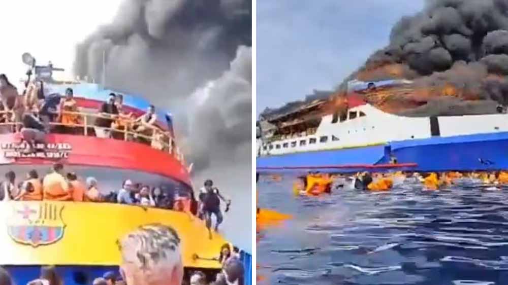 आग रविवार दोपहर स्थानीय समयानुसार लगभग 1.30 बजे लगी. वायरल वीडियो में घबराये हुए यात्रियों को देखा जा सकता है, जिनमें से कुछ अपने बच्चों के साथ आग से बचने के लिए समुद्र में छलांग लगाते हुए दिखाई दे रहे हैं. इस भयावह फुटेज में यात्री चमकीले नारंगी रंग की लाइफ जैकेट पहनकर पानी में कूदते दिखाई दे रहे हैं और जहाज में आग तेजी से फैल रही है. KM Barcelona III, KM Venecian और KM Cantika Lestari 9F नामक तीन बड़े जहाजों को तुरंत मौके पर भेजा गया.