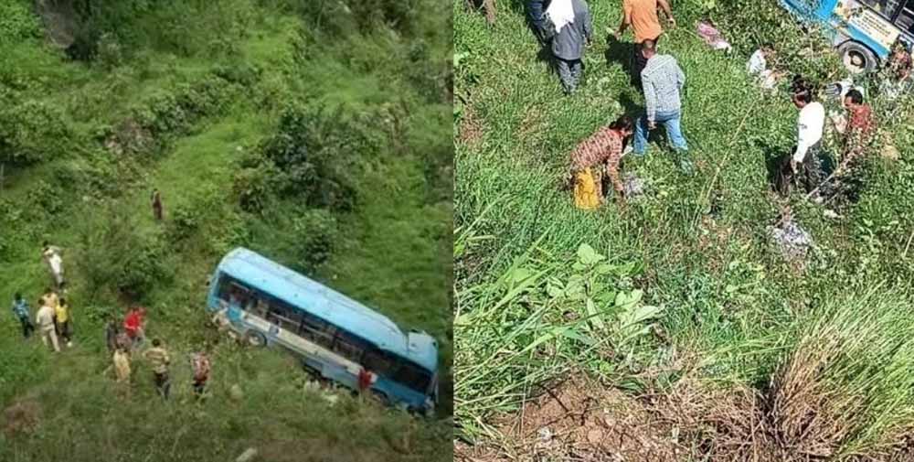 हिमाचल प्रदेश के मंडी जिले के सरकाघाट उपमंडल में मसेरन के पास तरांगला में बड़ा सड़क हादसा हुआ है। यात्रियों से भरी हिमाचल पथ परिवहन निगम(एचआरटीसी) की बस अनियंत्रित होकर नीचे खेतों में जा गिरी। हादसे में पांच यात्रियों की माैत हो गई है। करीब 20 यात्री घायल बताए जा रहे हैं। मृतकों में तीन महिलाएं व दो पुरुष शामिल हैं। घायलों का सरकाघाट अस्पताल में उपचार चल रहा है।