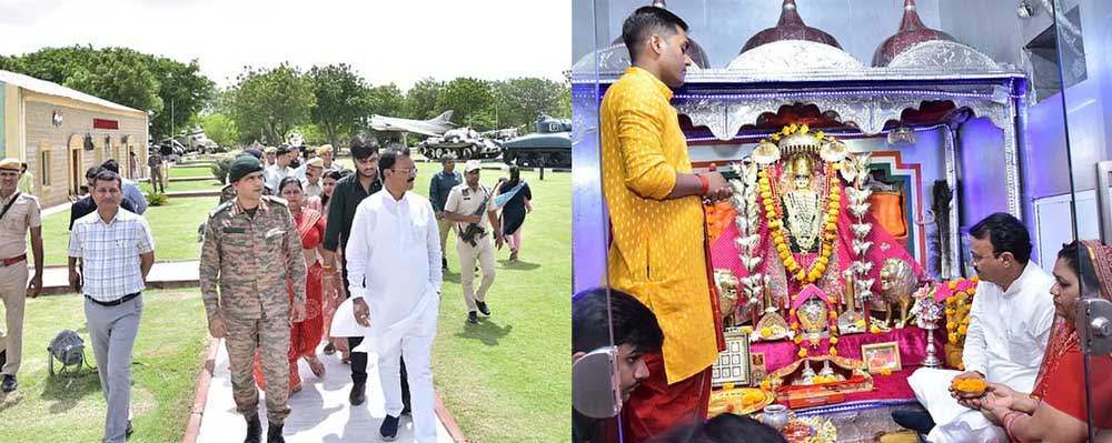 राजस्थान के उपमुख्यमंत्री डॉ. प्रेमचंद बैरवा दो दिवसीय जैसलमेर प्रवास के दौरान धार्मिक, सैनिक और सामाजिक स्थलों का दौरा करते हुए प्रदेशवासियों के कल्याण और सीमाओं की सुरक्षा के लिए मंगलकामनाएं कीं। इस दौरान उन्होंने अपने परिवार सहित भारत-पाक सीमा पर स्थित पावन तीर्थस्थल श्री तनोटराय माता मंदिर में दर्शन-पूजन कर प्रदेश की सुख-समृद्धि, देश की सुरक्षा और लोक कल्याण की कामना की।