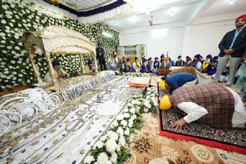 सिख गुरु श्री गुरु तेग बहादुर जी के 350वें शहीदी दिवस के पावन अवसर पर रविवार को श्री आनंदपुर साहिब में धार्मिक समारोह का आयोजन हुआ। इस मौके पर पंजाब के मुख्यमंत्री भगवंत मान ने बाबा बुढ़ा दल छावनी में श्री अखंड पाठ साहिब के समक्ष मत्था टेका। मुख्यमंत्री भगवंत मान ने सोशल मीडिया प्लेटफॉर्म 'एक्स' पर समारोह की तस्वीर पोस्ट की। मुख्यमंत्री मान के साथ पंजाब के राज्यपाल गुलाब चंद कटारिया और आम आदमी पार्टी के राष्ट्रीय संयोजक अरविंद केजरीवाल भी मौजूद रहे। भगवंत मान ने कहा, "नौवें पातशाह साहिब श्री गुरु तेग बहादुर जी के 350वें शहीदी दिवस को समर्पित श्री आनंदपुर साहिब स्थित बाबा बुढ़ा दल छावनी में श्री अखंड पाठ साहिब के आरंभ के अवसर पर राज्यपाल गुलाब चंद कटारिया और राष्ट्रीय संयोजक अरविंद केजरीवाल के साथ शामिल होने का सौभाग्य प्राप्त हुआ।"