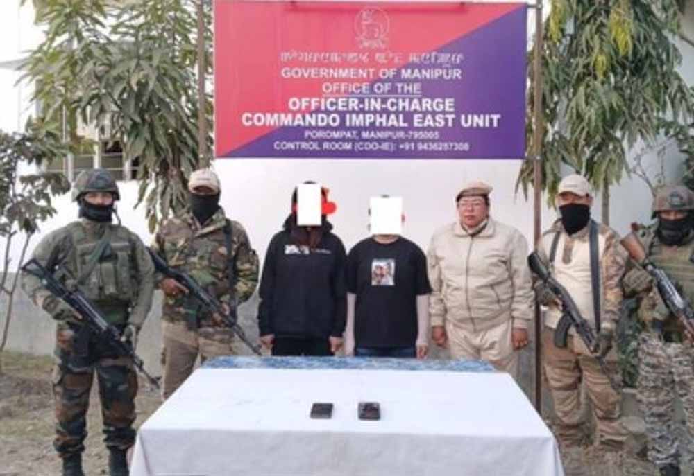 मणिपुर पुलिस ने इंफाल पूर्व जिले के पोरोमपत पंगल लेइराक इलाके से एक ड्रग डीलर बेसैमायुम याइबी (47) को गिरफ्तार किया। उसके पास से सात साबुन के डिब्बों में छिपाई गई हेरोइन जब्त की गई। ड्रग्स की अनुमानित कीमत 16 लाख रुपए थी। सुरक्षा बलों ने काकचिंग जिले से कुछ हथियार और गोला-बारूद भी बरामद किए। बरामद हथियारों और गोला-बारूद में एक एसएलआर, स्थानीय रूप से बनी बोल्ट एक्शन स्नाइपर राइफल, एक डबल-बैरल बोल्ट राइफल, एक सिंगल-बैरल बोल्ट राइफल, एक स्थानीय रूप से बनी पिस्तौल और एक 36 एचई हैंड ग्रेनेड शामिल हैं।