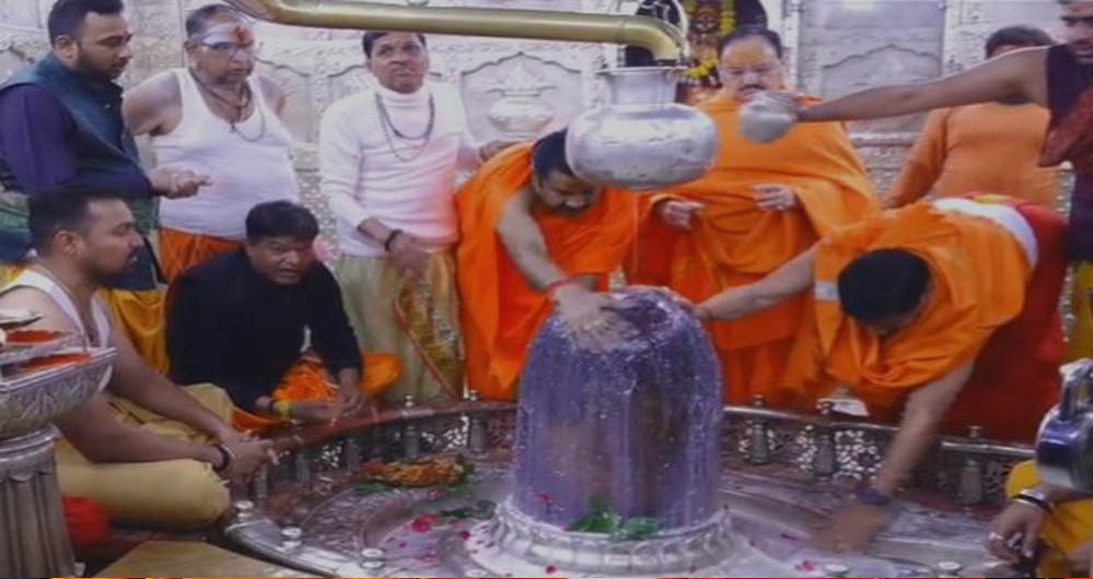BJP के राष्ट्रीय अध्यक्ष और केंद्रीय स्वास्थ्य मंत्री जेपी नड्डा उज्जैन स्थित विश्व प्रसिद्ध महाकालेश्वर मंदिर पहुंचे. उनके साथ प्रदेश के मुख्यमंत्री मोहन यादव भी थे. दोनों नेताओं ने गर्भगृह में जाकर विधि-विधान से बाबा महाकाल का पंचामृत अभिषेक किया और भगवान महाकाल की आरती उतारी. इस दौरान जेपी नड्डा ने कुछ समय नंदी हाल में बिताया और यहां षोडशोपचार पूजन किया. यह पूजन करने से यश, कीर्ति और प्रतिष्ठा प्राप्त होती है.