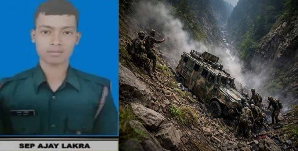 जम्मू-कश्मीर के डोडा जिले में गुरुवार को आतंकवाद विरोधी अभियान के दौरान जवान अजय लकड़ा की मौत हो गई। अजय लकड़ा धुर्वा स्थित लाबेद गांव के रहने वाले थे। बताया जा रहा है कि वह खाई में गिरने से शहीद हुए। उनके परिवार के लिए यह घटना एक बड़ा सदमा है।