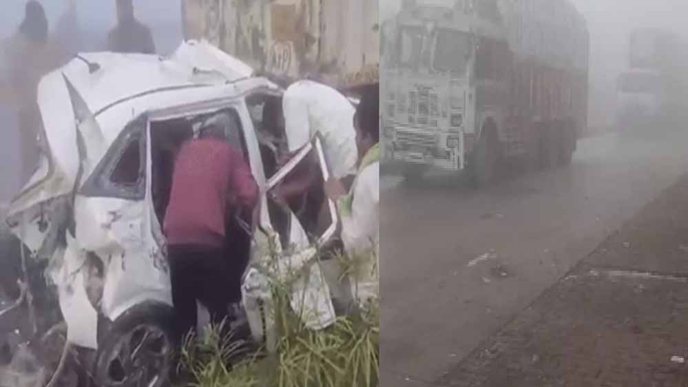 राजस्थान में कड़ाके की ठंड के साथ अब घना कोहरा जानलेवा साबित हो रहा है। शुक्रवार सुबह भीलवाड़ा जिले में नेशनल हाईवे-58 (भीलवाड़ा-उदयपुर हाईवे) पर कम विजिबिलिटी के कारण एक भीषण सड़क हादसा हो गया। यहाँ कोहरे के कारण एक के बाद एक 6 गाड़ियां आपस में टकरा गईं, जिसमें 3 लोगों की मौके पर ही मौत हो गई और 6 से अधिक लोग गंभीर रूप से घायल हैं। हादसे के बाद लगा 4 KM लंबा जाम सुबह करीब 8 बजे हुए इस एक्सीडेंट के बाद हाईवे पर चीख-पुकार मच गई। टक्कर इतनी जबरदस्त थी कि गाड़ियां पूरी तरह चकनाचूर हो गईं और कई लोग मलबे में फंस गए। हादसे के कारण हाईवे पर करीब 4 किलोमीटर लंबा जाम लग गया, जिसमें घायलों को लेने पहुंची एम्बुलेंस भी काफी देर तक फंसी रही। स्थानीय लोगों और पुलिस ने कड़ी मशक्कत के बाद गाड़ियों में फंसे लोगों को बाहर निकाला।