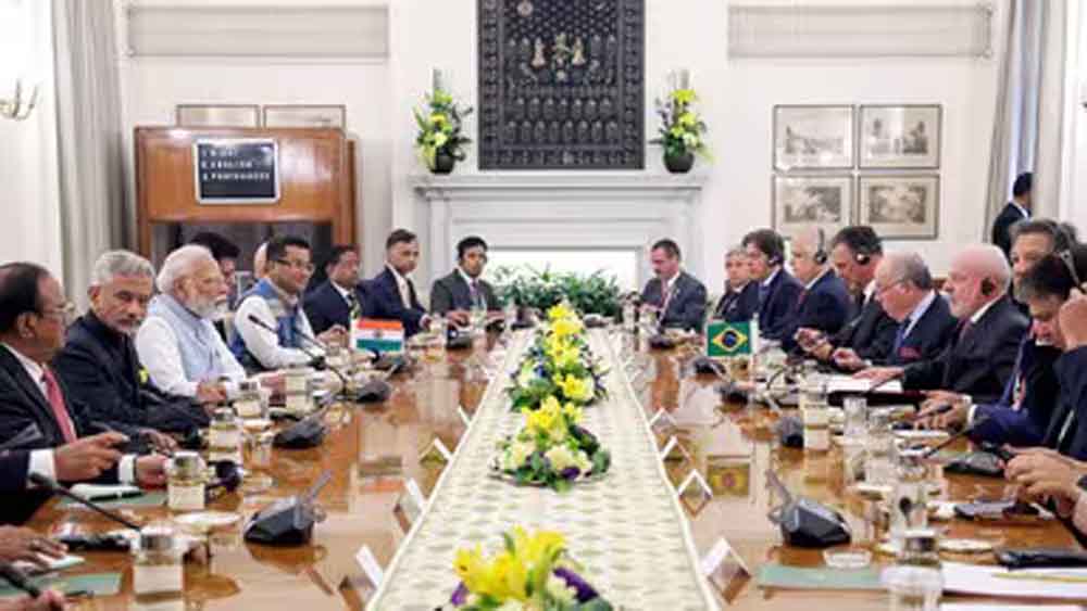 ऊर्जा सहयोग दोनों देशों के संबंध का मजबूत स्तंभ है। हाइड्रोकार्बन के अलावा नवीकरणीय ऊर्जा, इथेनॉल मिश्रण और सस्टेनेबल एविएशन फ्यूल में सहयोग तेज किया जा रहा है। ब्राजील की ग्लोबल बायोफ्यूल एलायंस में सक्रिय भागीदारी हरित भविष्य के प्रति साझा प्रतिबद्धता दिखाती है। इसके अलावा, ब्राजील ने आपदा प्रतिरोधी इंफ्रास्ट्रक्चर गठबंधन (सीडीआरआई) की सह-अध्यक्षता का प्रस्ताव दिया है, जिसकी पीएम मोदी ने सराहना की। ब्राजील के अनुभव से इस क्षेत्र में महत्वपूर्ण योगदान मिलेगा। प्रतिनिधिमंडल स्तर की वार्ता में विदेश मंत्री एस जयशंकर, वाणिज्य मंत्री पीयूष गोयल समेत अन्य वरिष्ठ अधिकारी मौजूद थे।