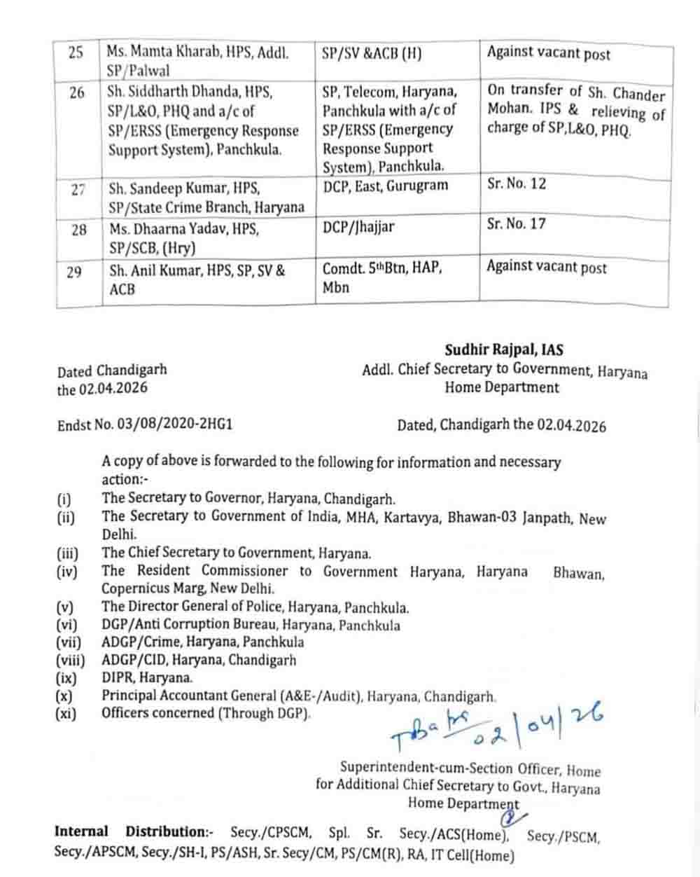 2. सिद्धार्थ ढांडा – एसपी एल एंड ओ मुख्यालय – एसपी टेलीकाम पंचकूला