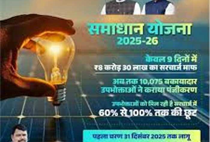 1 min read भोपाल मध्य प्रदेश समाधान योजना का प्रथम चरण 31 दिसंबर तक, उठाएं सरचार्ज में सौ फीसदी तक छूट का लाभ 3 months ago Renuka Sahu भोपाल विगत 3 नवंबर से शुरू हुई समाधान योजना 2025-26 का लाभ लाखों बकायादार उपभोक्ता उठा रहे हैं। कंपनी के...